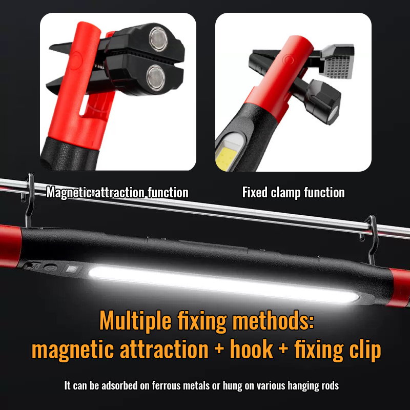 Equipped with double-sided strong magnets and a secure clamp, this light attaches effortlessly to metal surfaces or can be clamped onto rods, shelves, or pipes. No more awkward balancing or holding a flashlight while you work.
